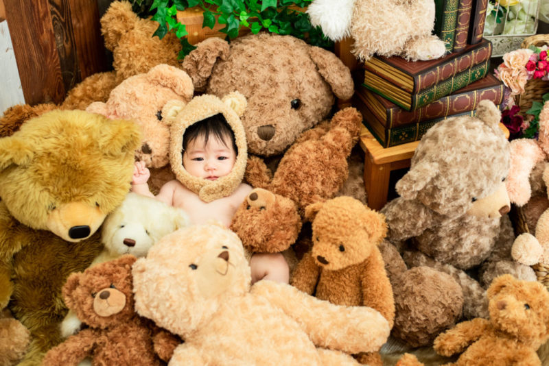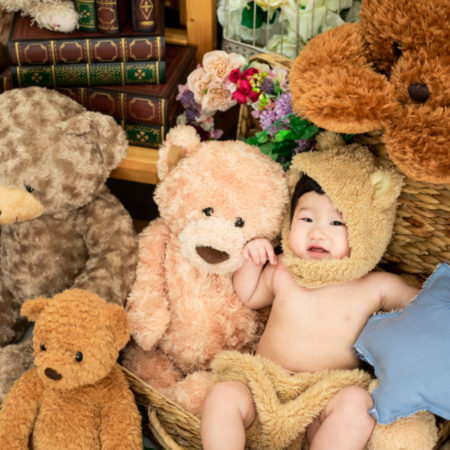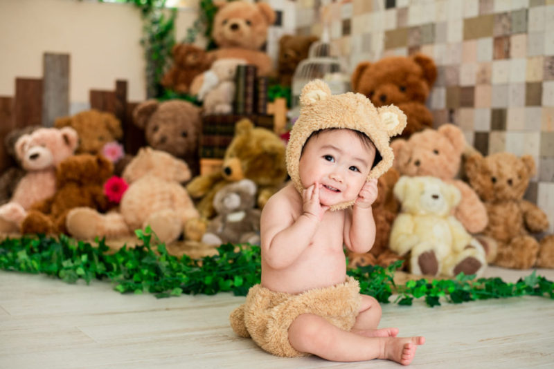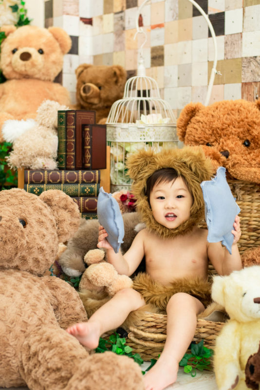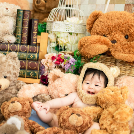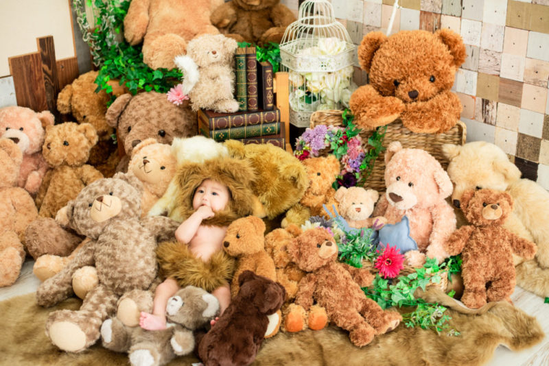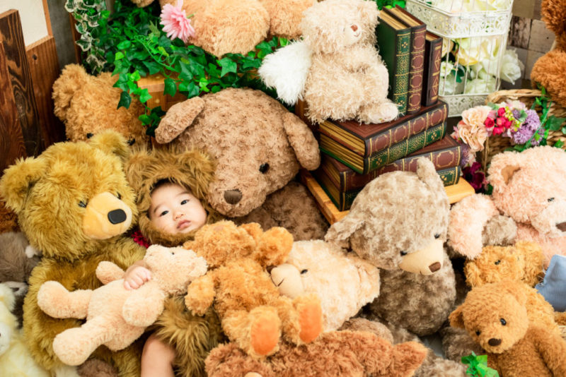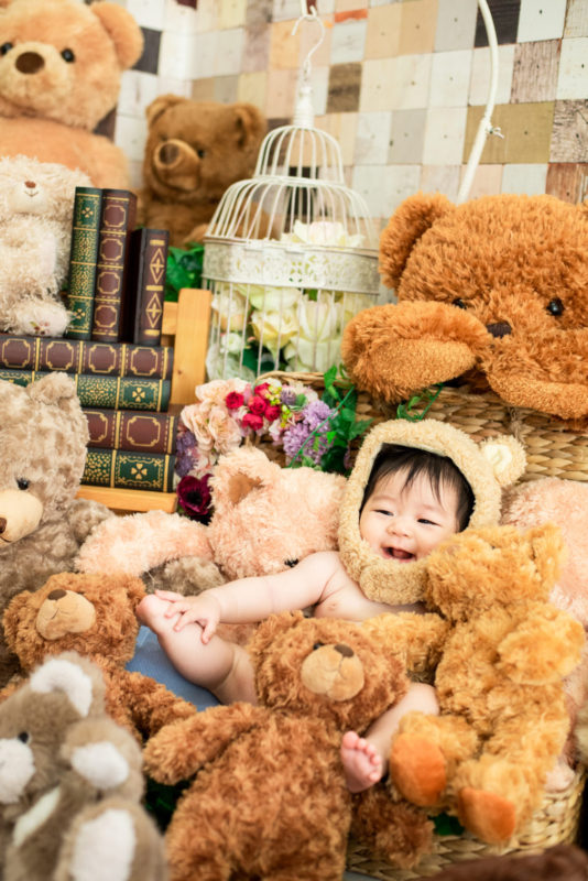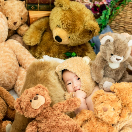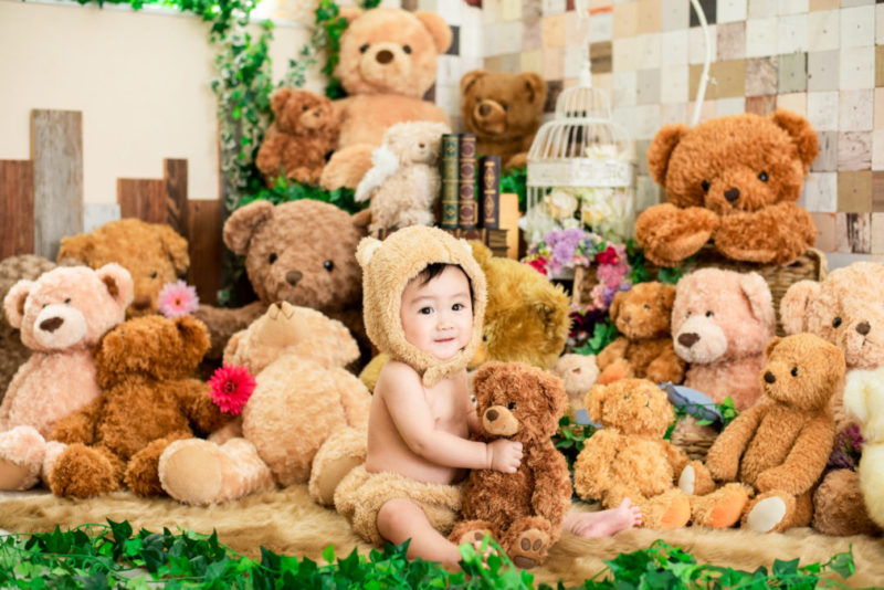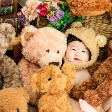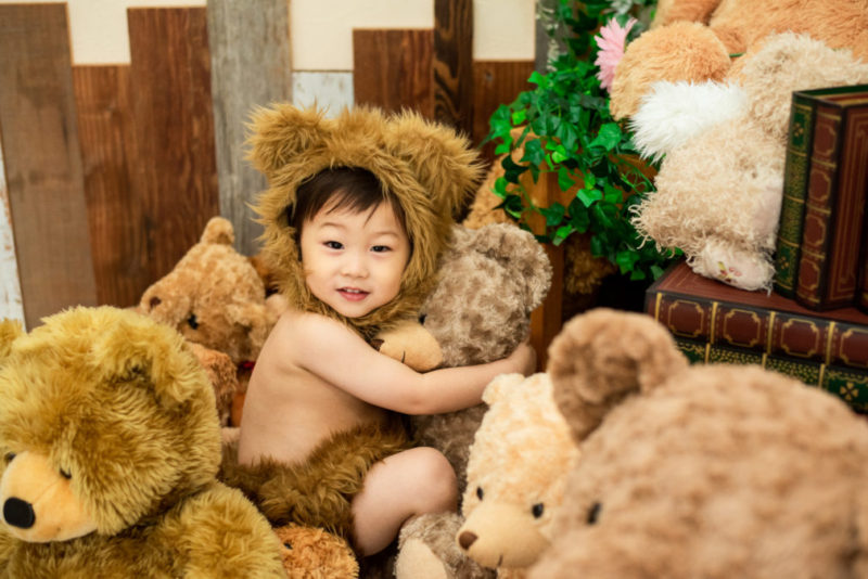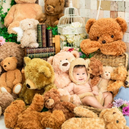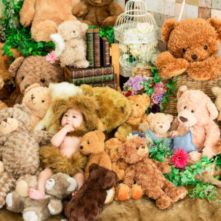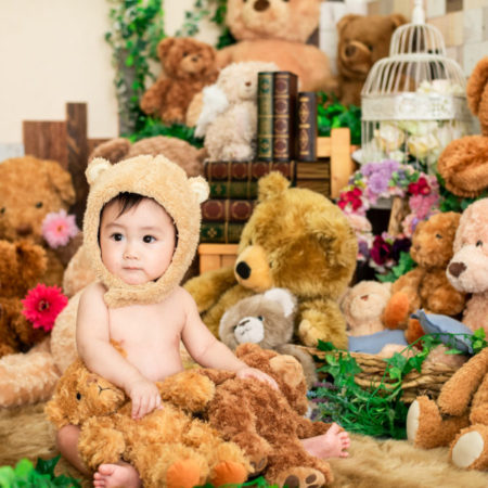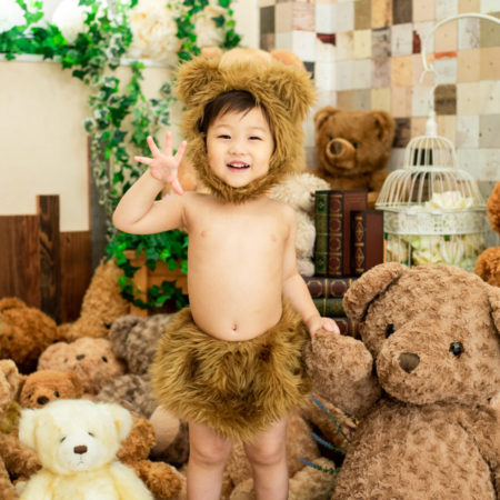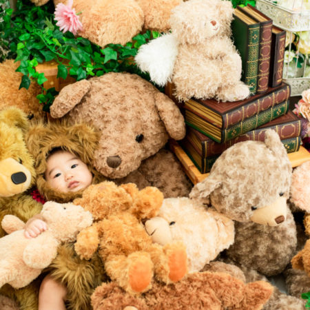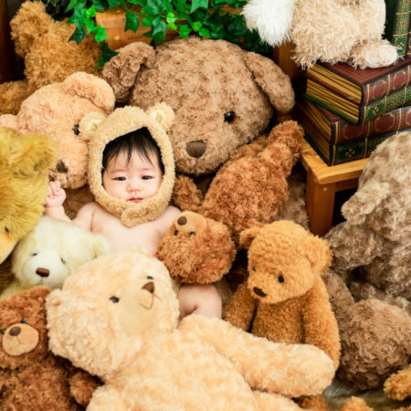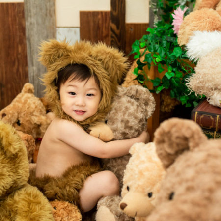 くまの着ぐるみとたくさんのくまのぬいぐるみで撮影する 「くまボーイ・くまガール撮影会」をstudio Feteで開催しました。 くまさんになりきった可愛らしい姿のお子様13名様をご紹介いたします。
