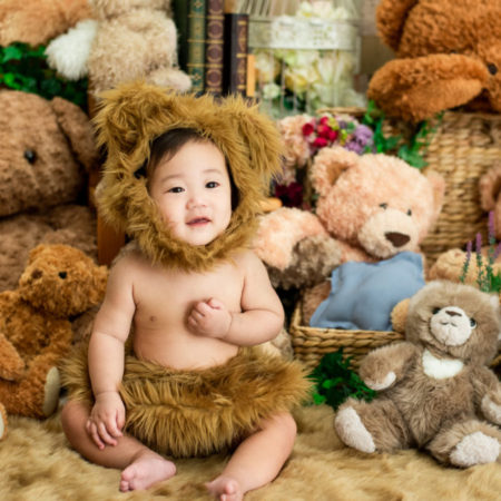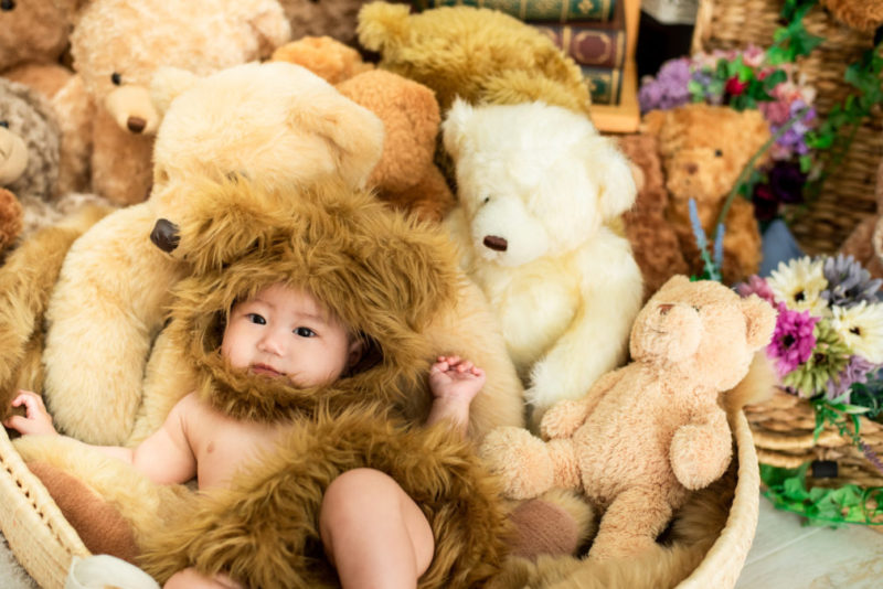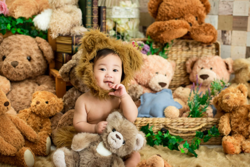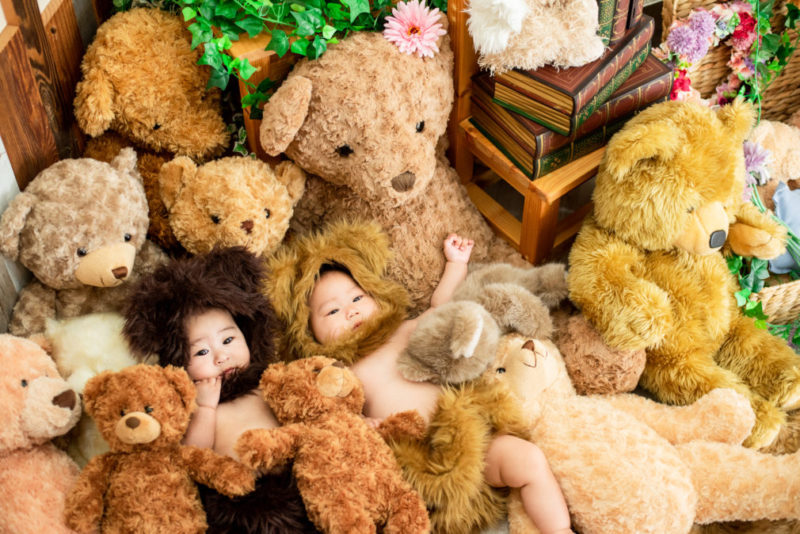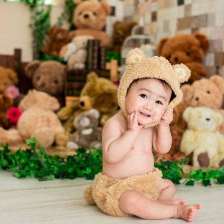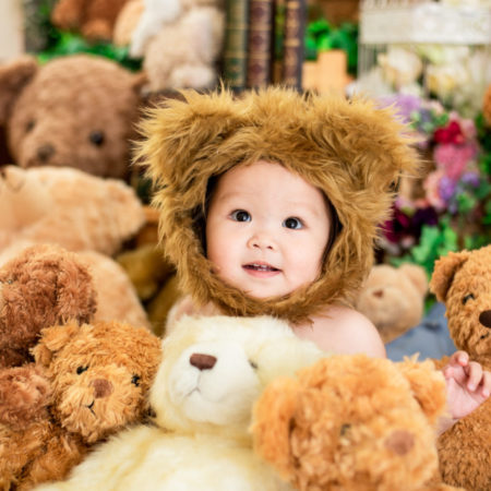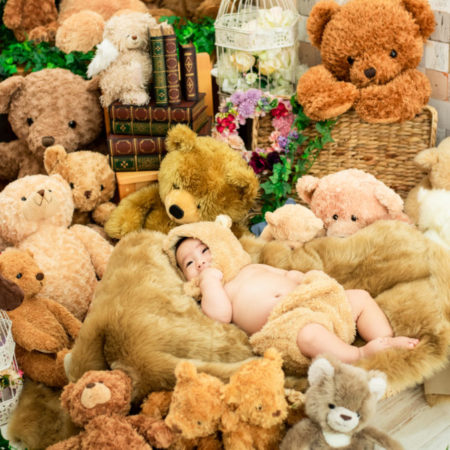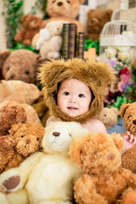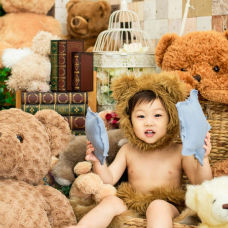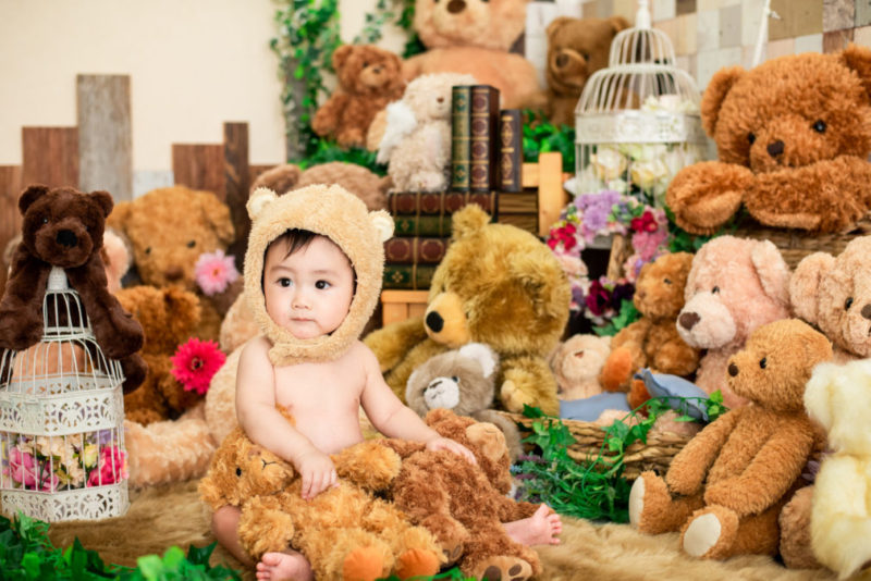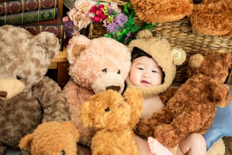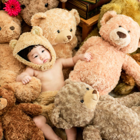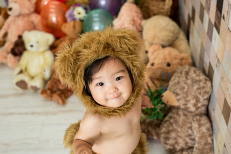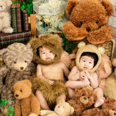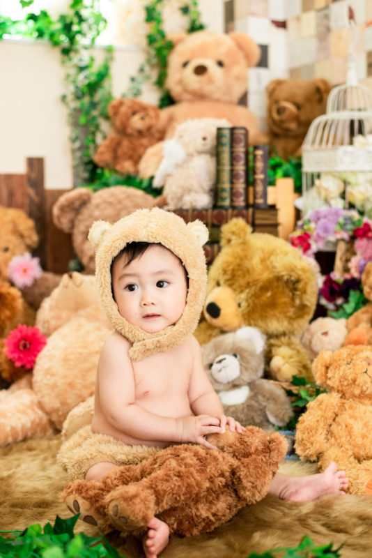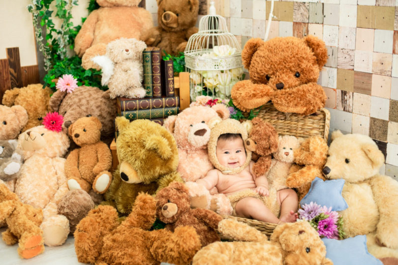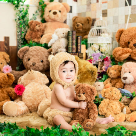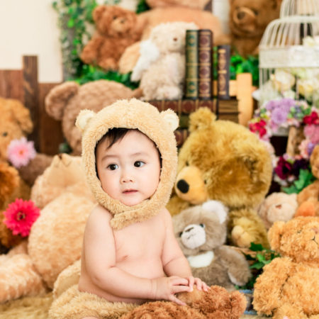 くまの着ぐるみとたくさんのくまのぬいぐるみで撮影する 「くまボーイ・くまガール撮影会」をstudio Feteで開催しました。 くまさんになりきった可愛らしい姿のお子様13名様をご紹介いたします。