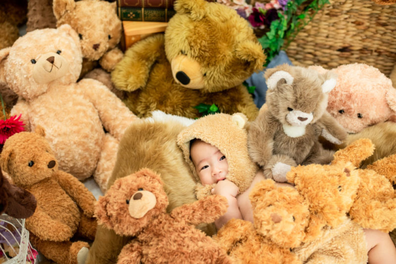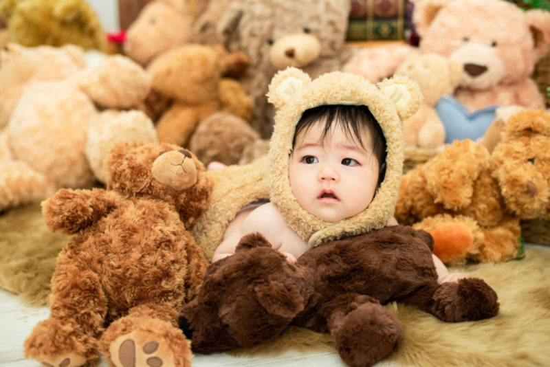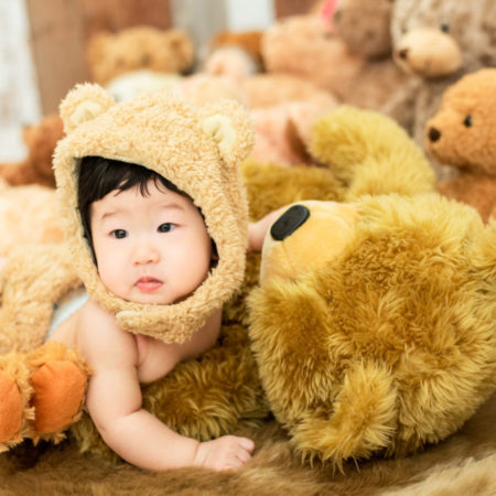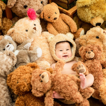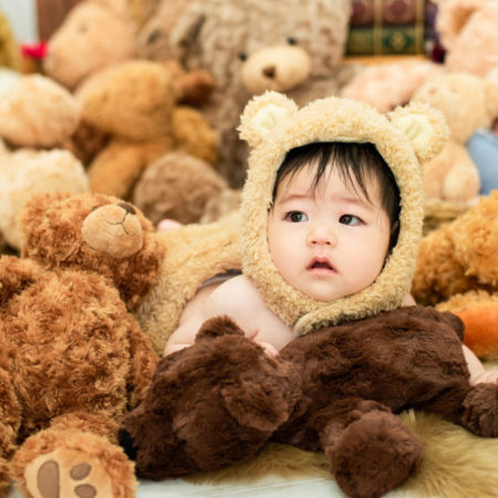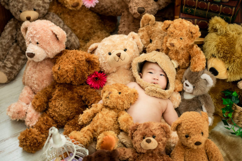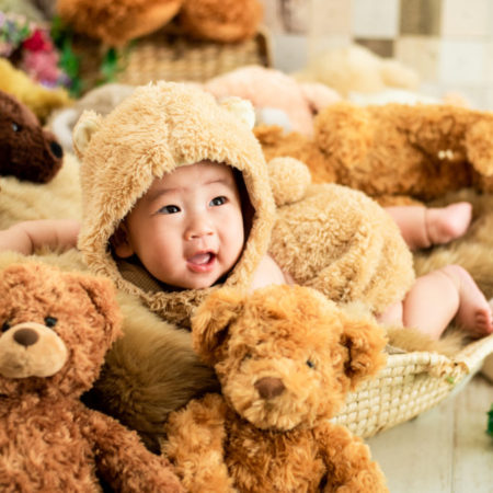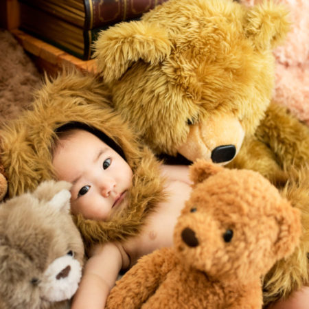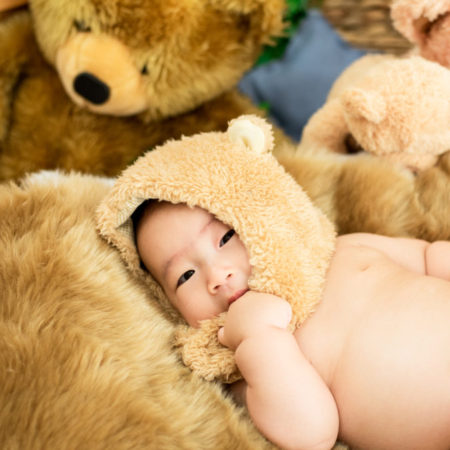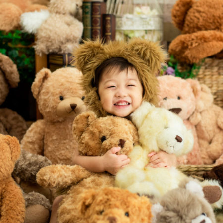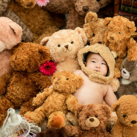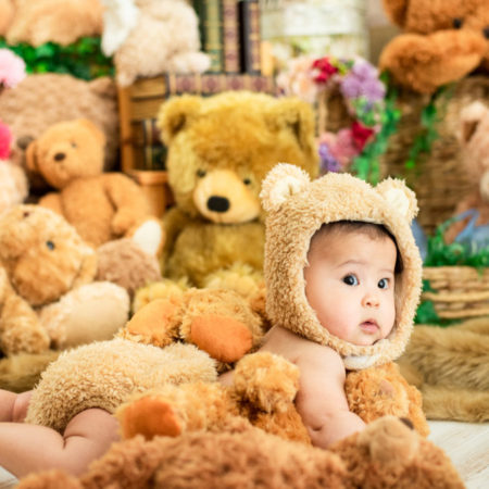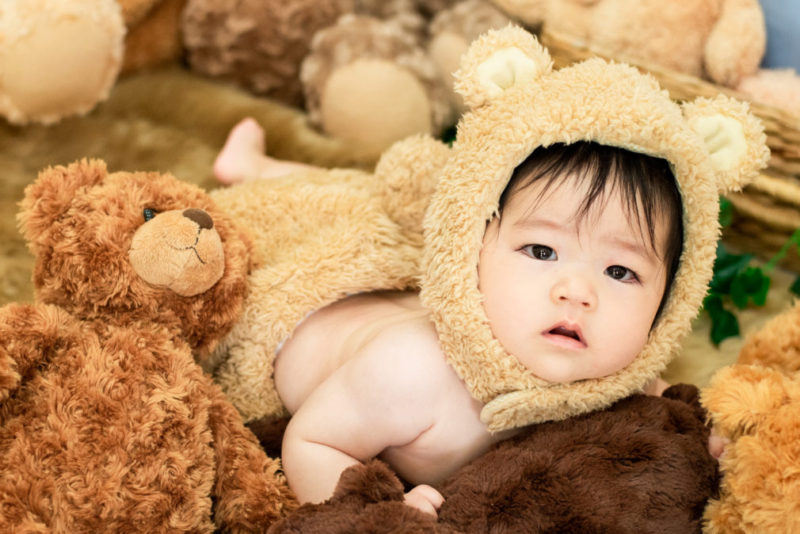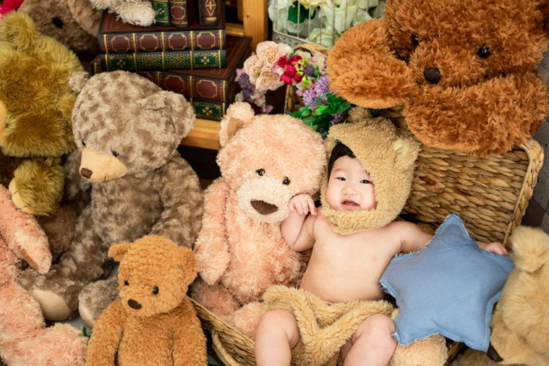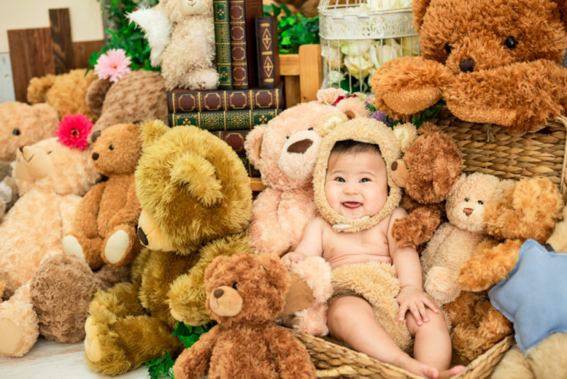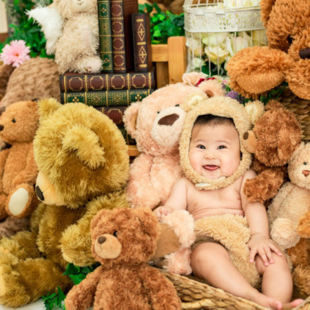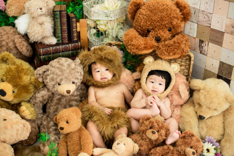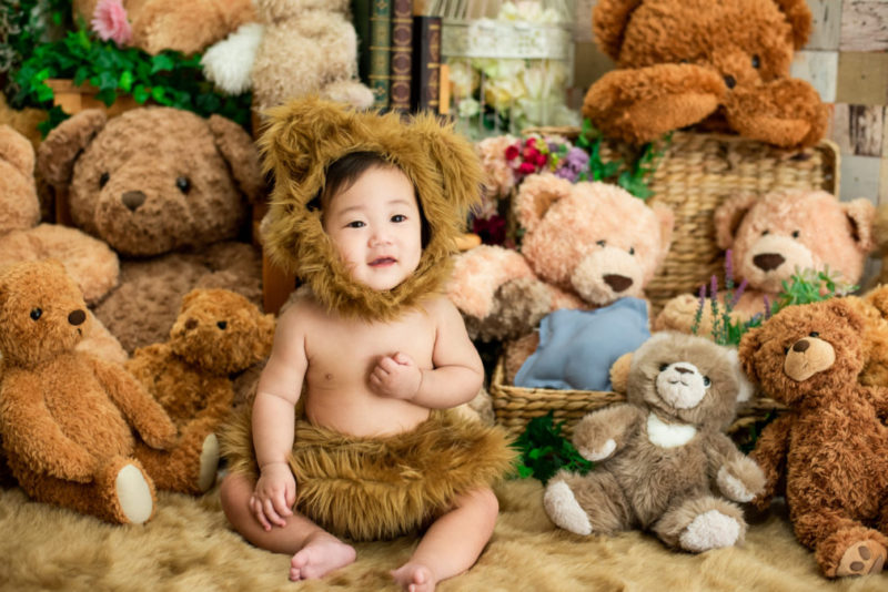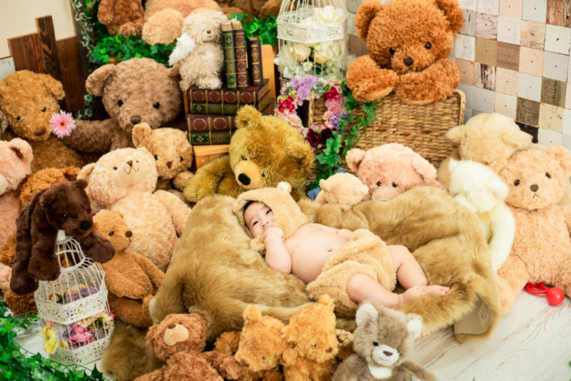 くまの着ぐるみとたくさんのくまのぬいぐるみで撮影する 「くまボーイ・くまガール撮影会」をstudio Feteで開催しました。 くまさんになりきった可愛らしい姿のお子様13名様をご紹介いたします。