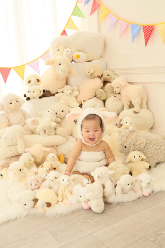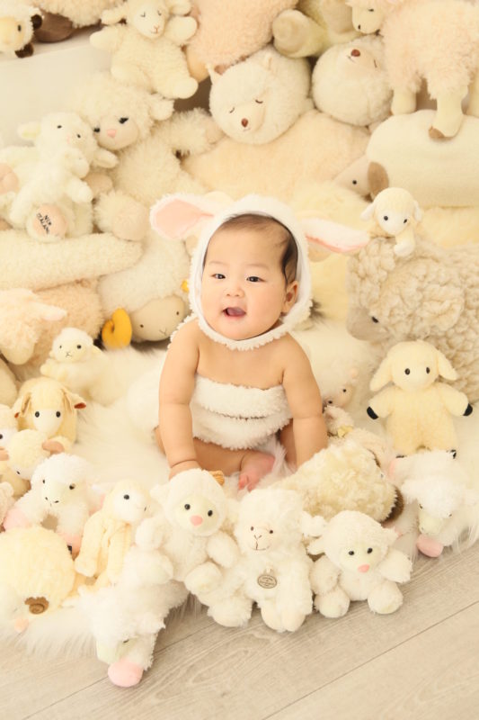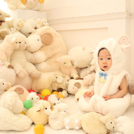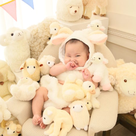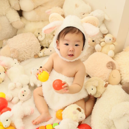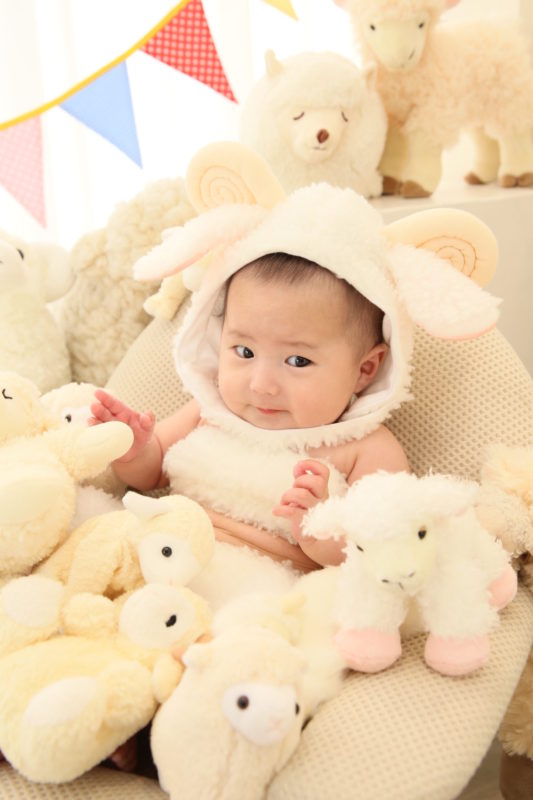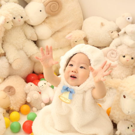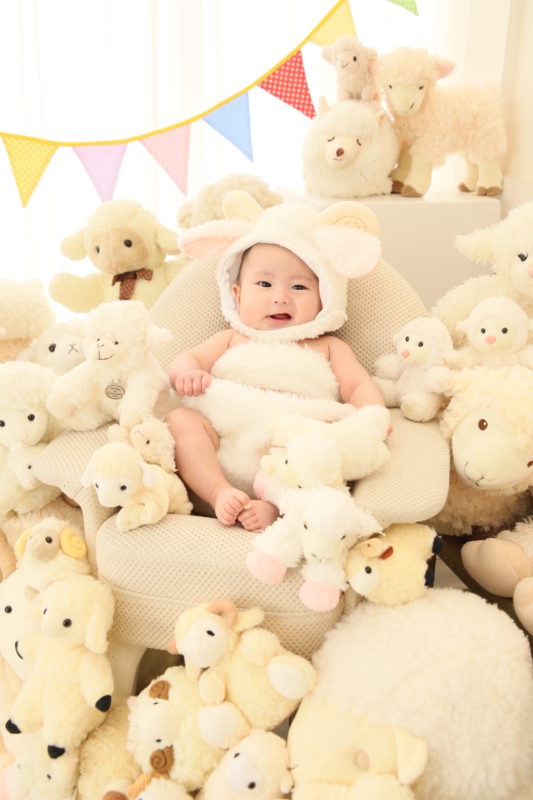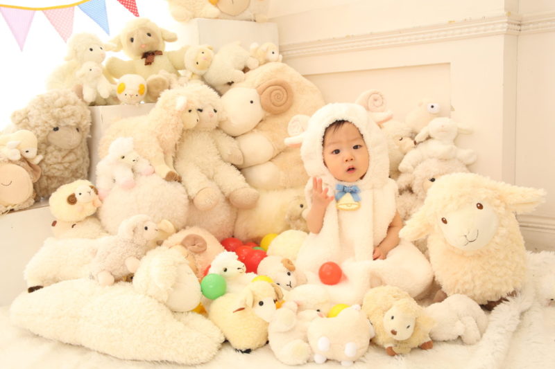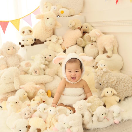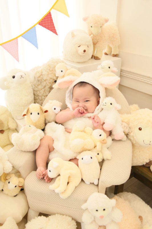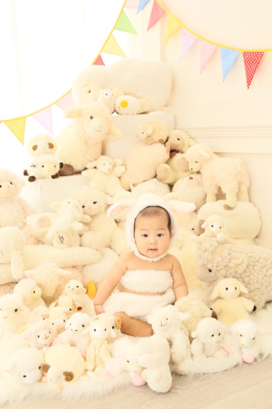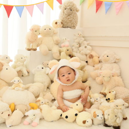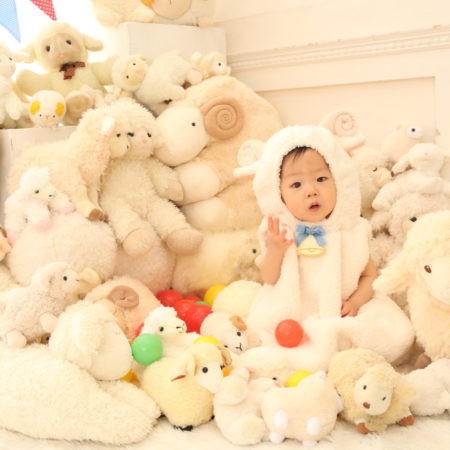 ひつじのコスチュームを着て たくさんのひつじさんぬいぐるみと撮影する 「ふわもこひつじ撮影会」をスタジオエムズゆめモール柳川店で開催しました。 ひつじさんになりきった可愛らしい姿のお子様をご紹介いたします。
