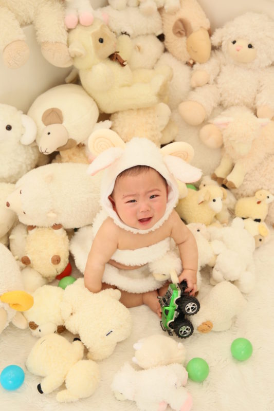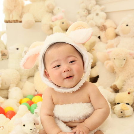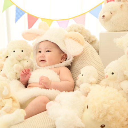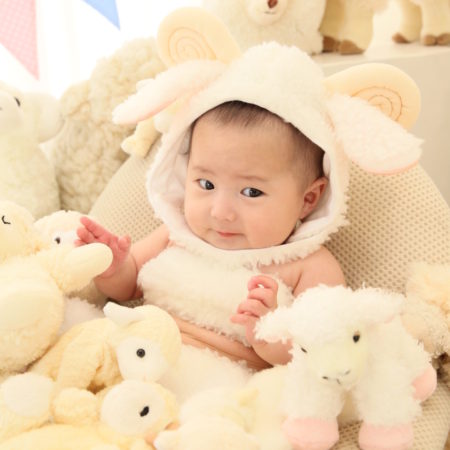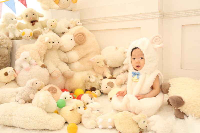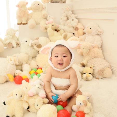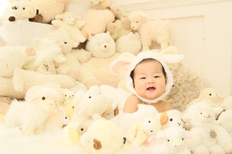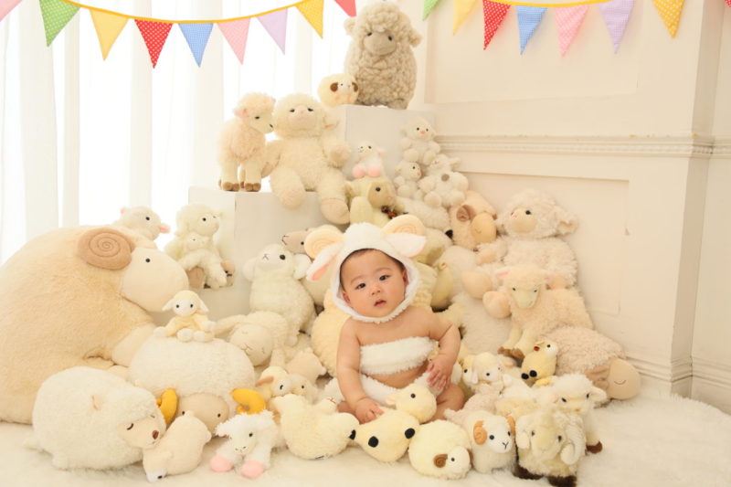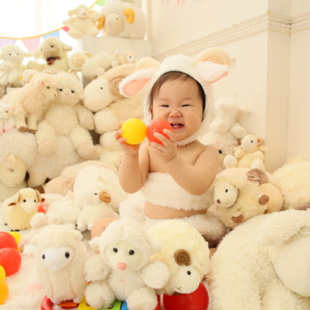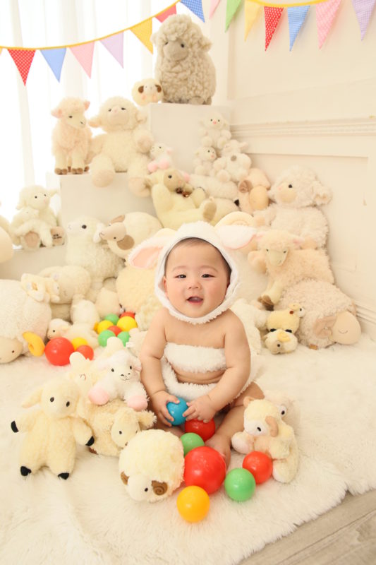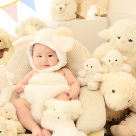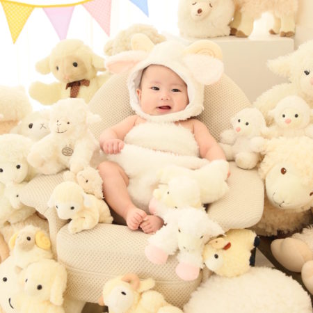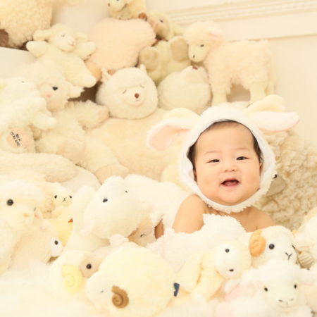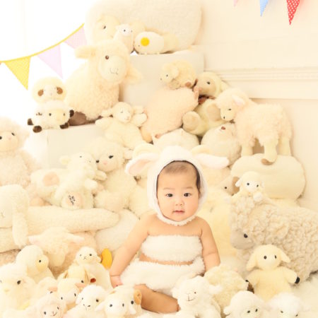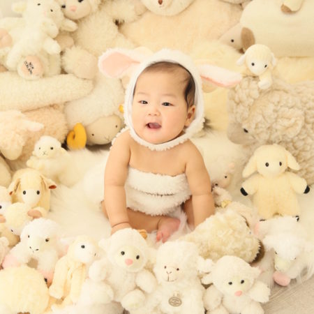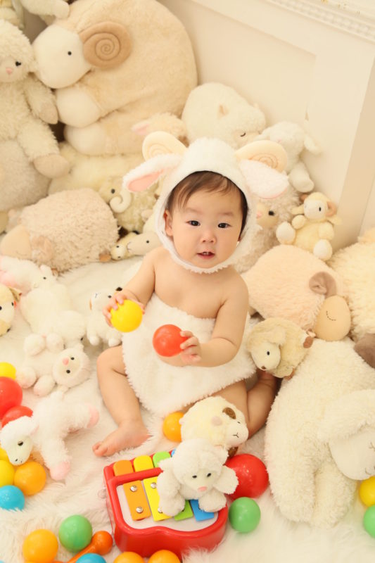 ひつじのコスチュームを着て たくさんのひつじさんぬいぐるみと撮影する 「ふわもこひつじ撮影会」をスタジオエムズゆめモール柳川店で開催しました。 ひつじさんになりきった可愛らしい姿のお子様をご紹介いたします。
