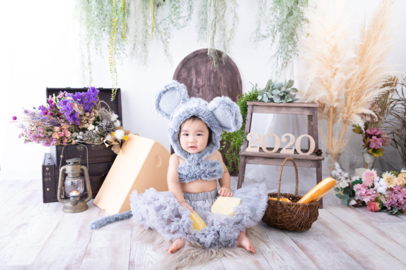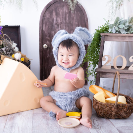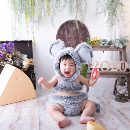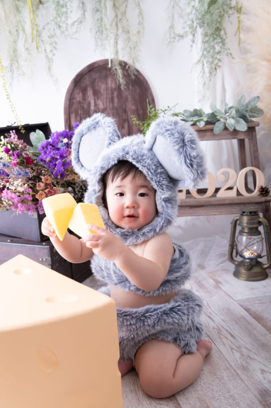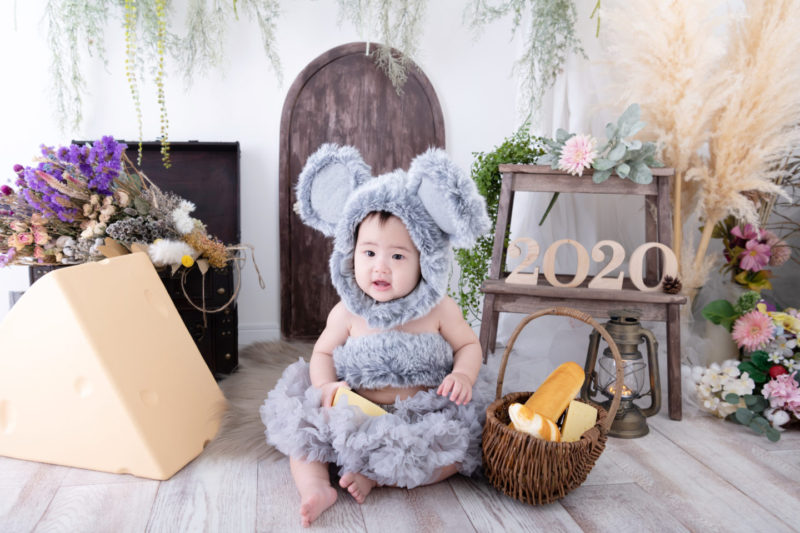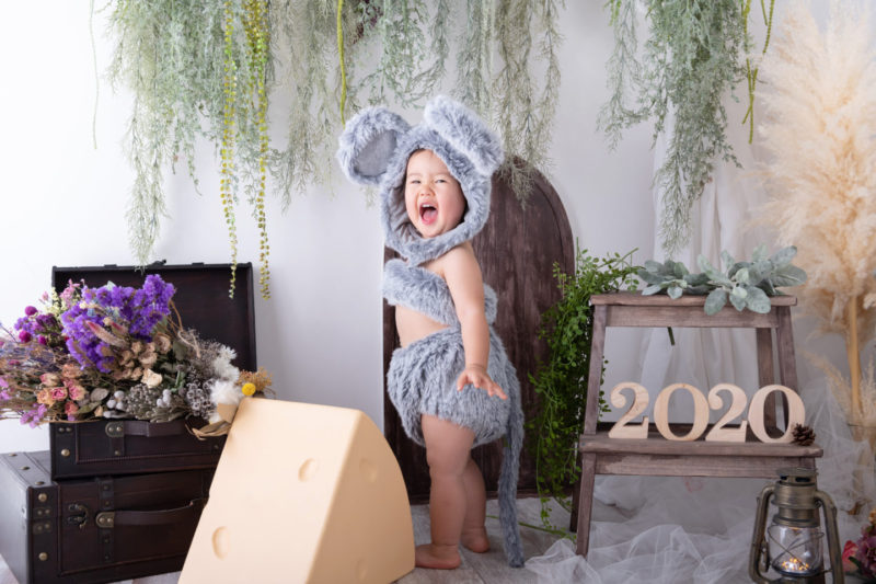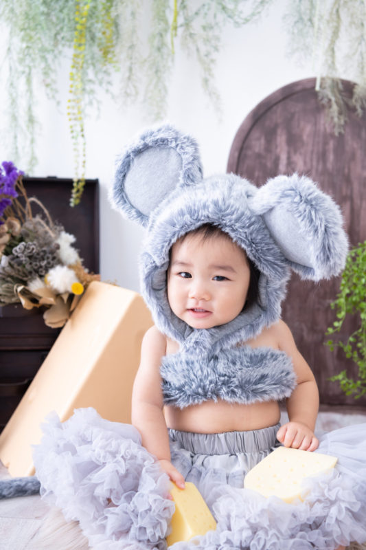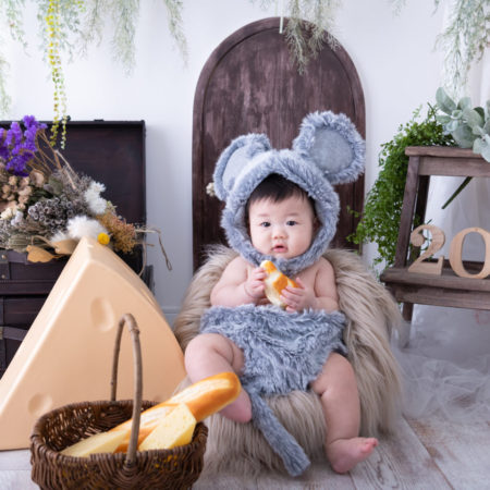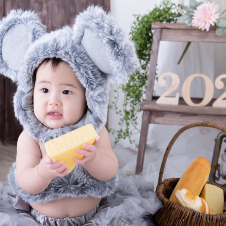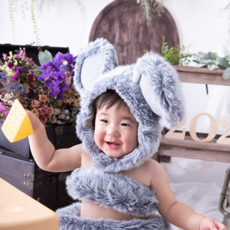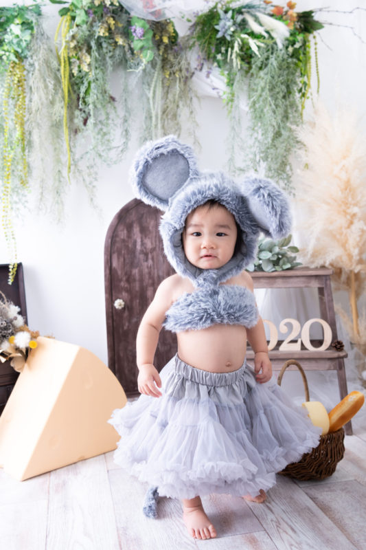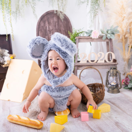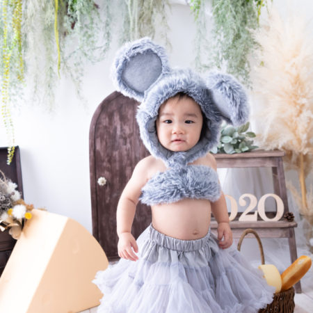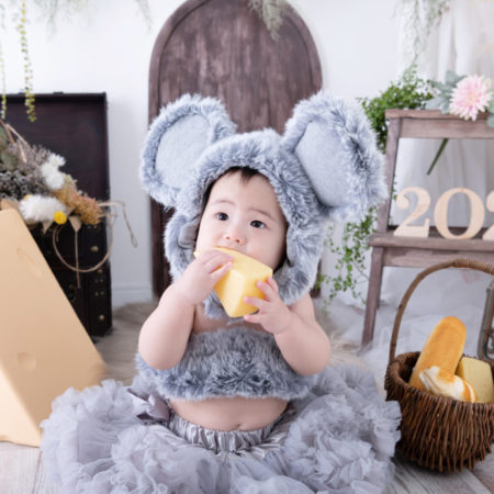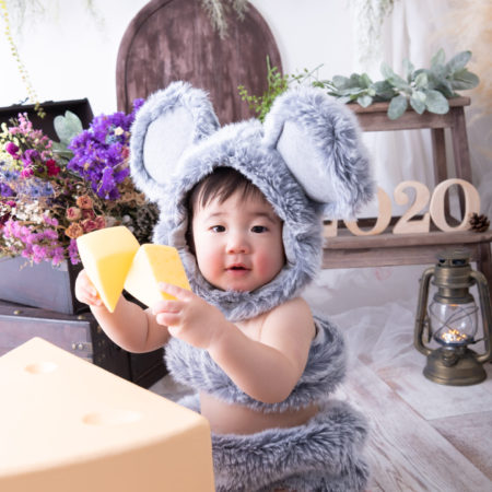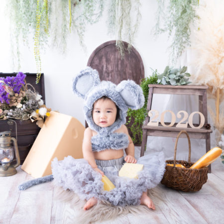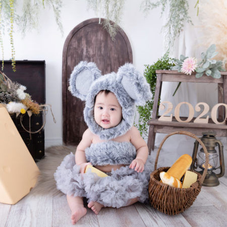 かわいいねずみの衣装を着てスタジオ撮影する、new year撮影会