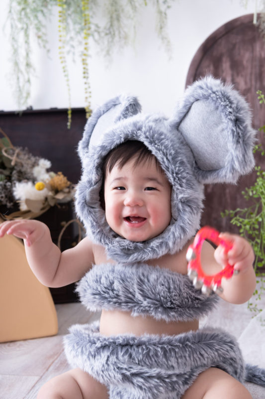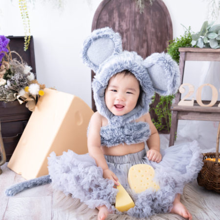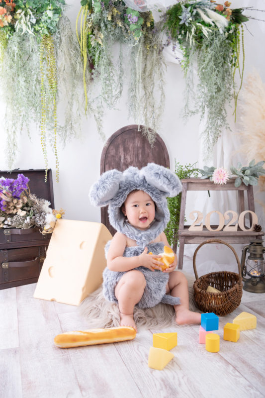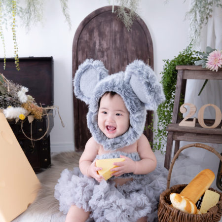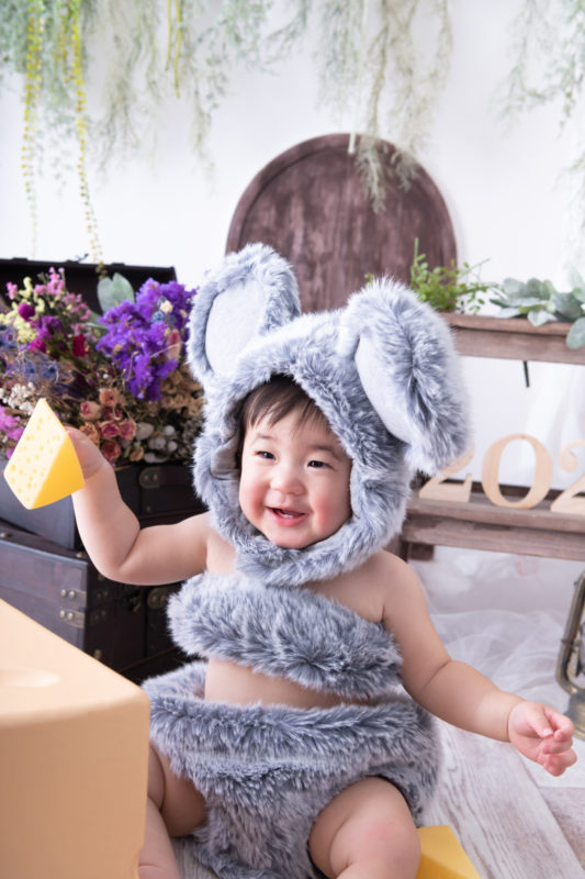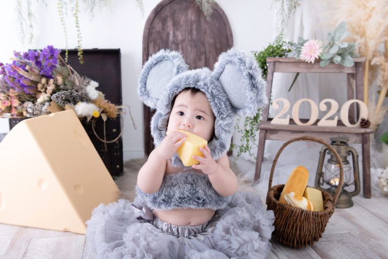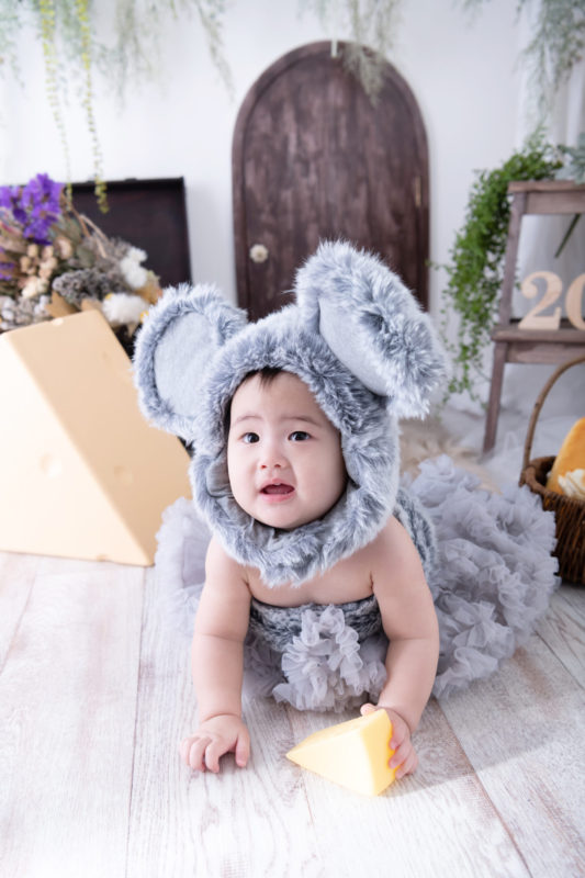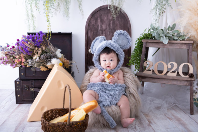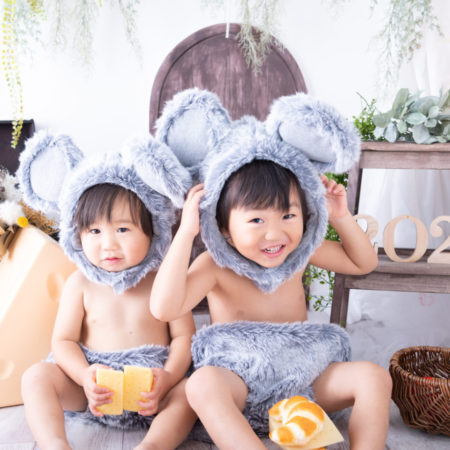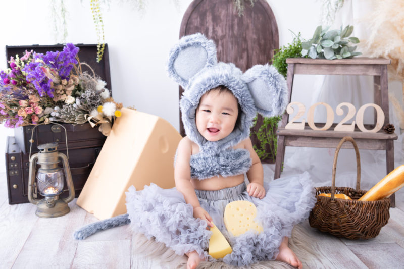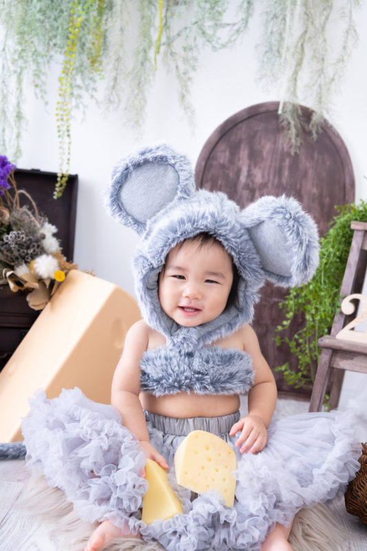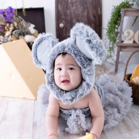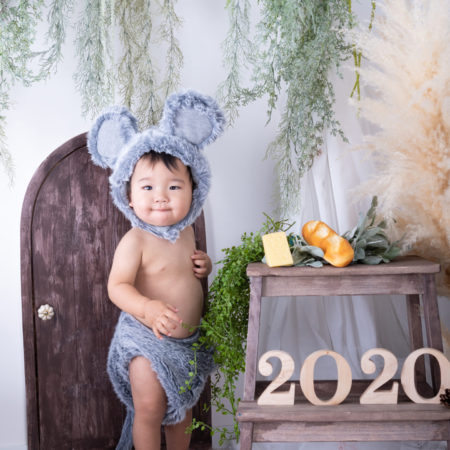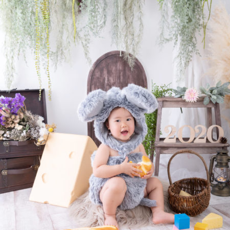 かわいいねずみの衣装を着てスタジオ撮影する、new year撮影会