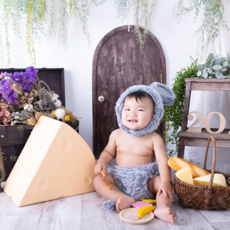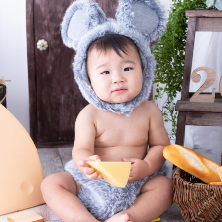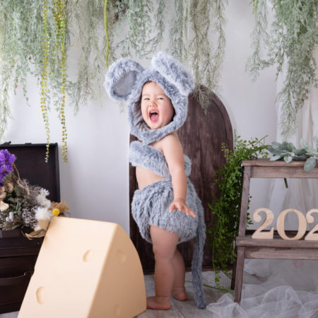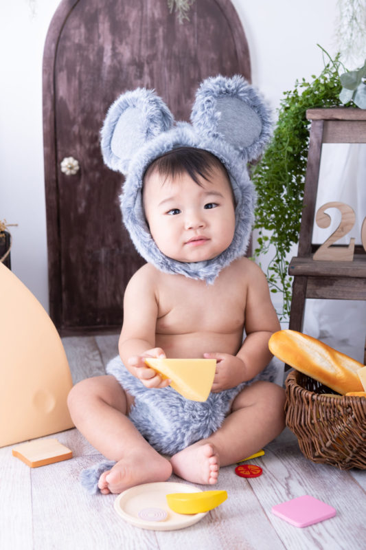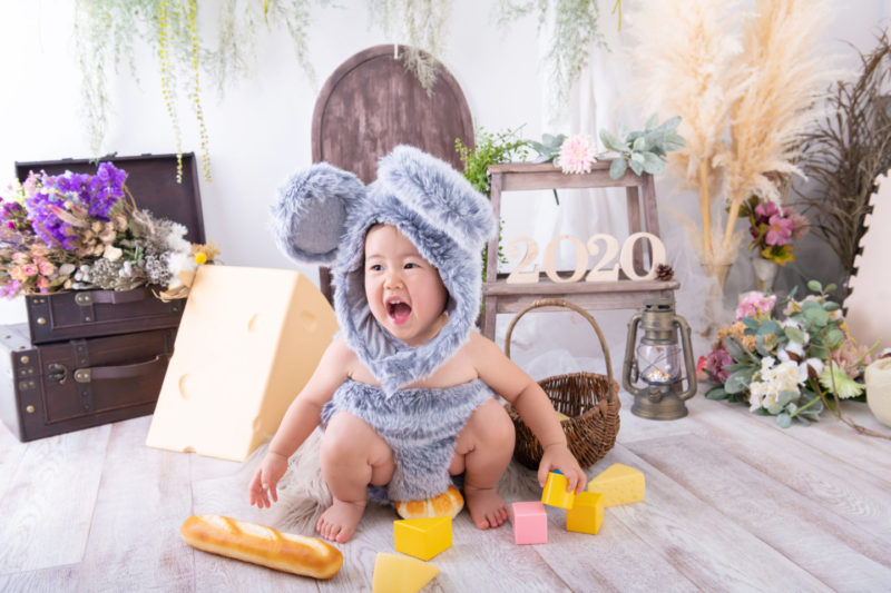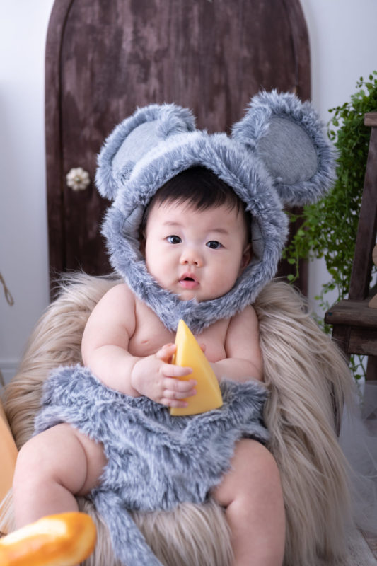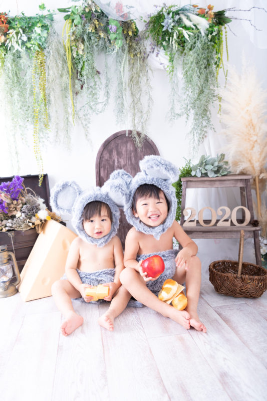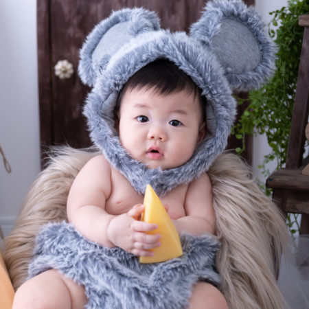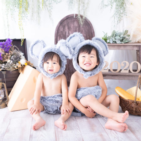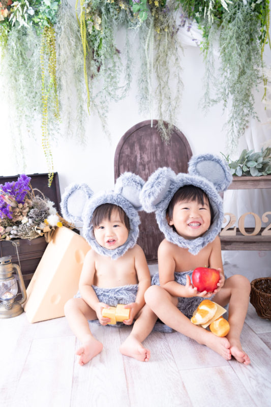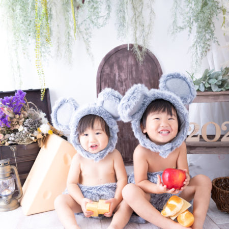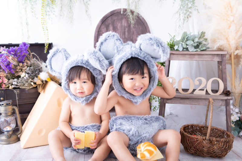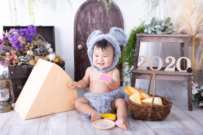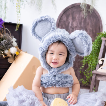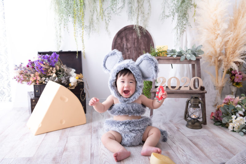 かわいいねずみの衣装を着てスタジオ撮影する、new year撮影会