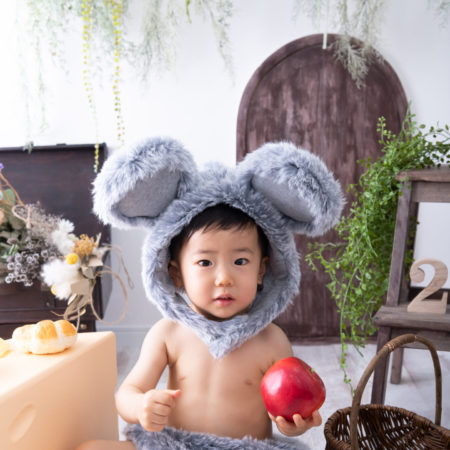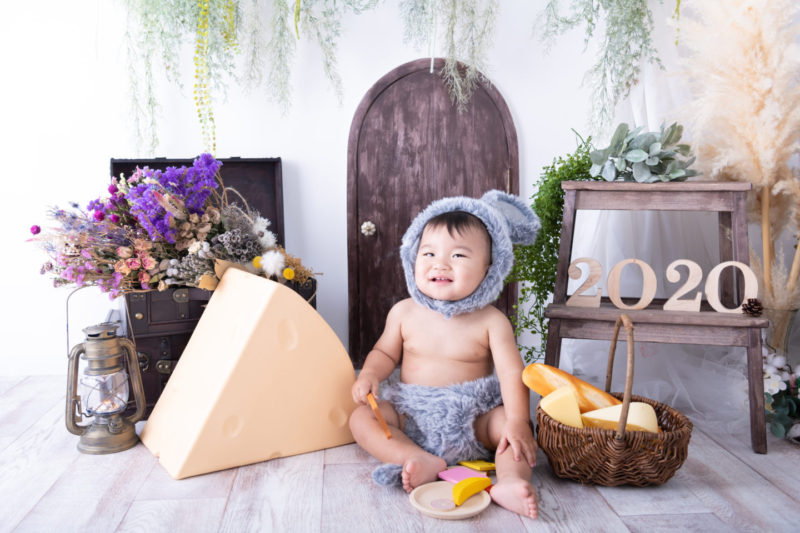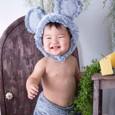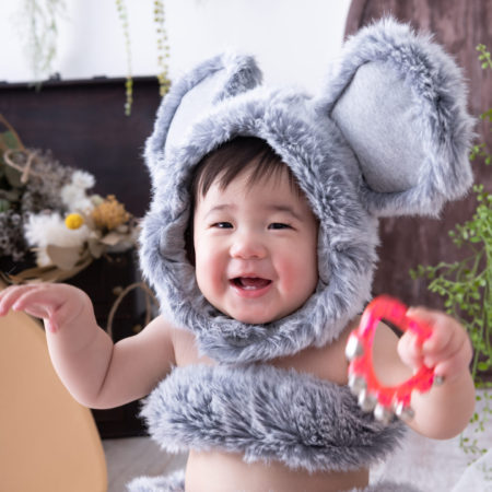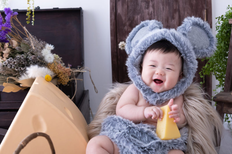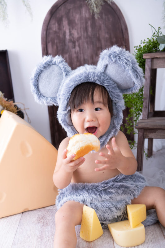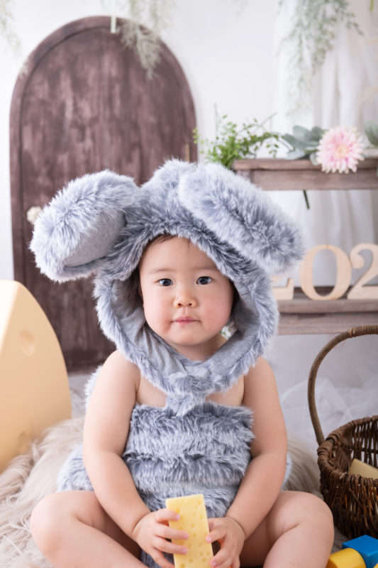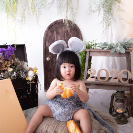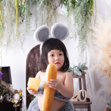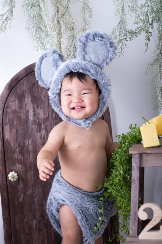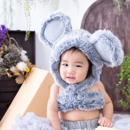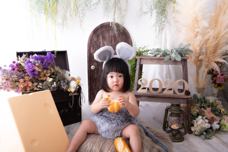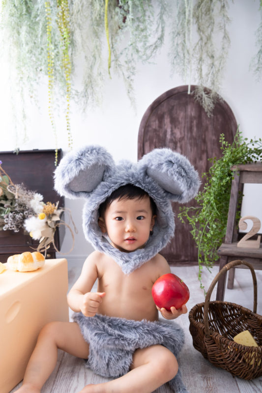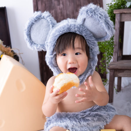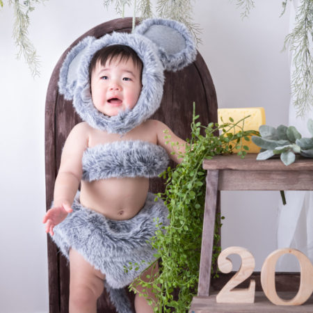 かわいいねずみの衣装を着てスタジオ撮影する、new year撮影会