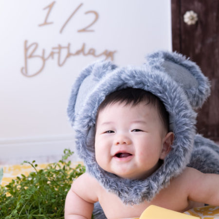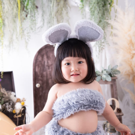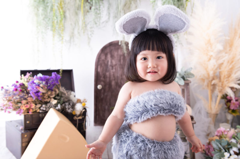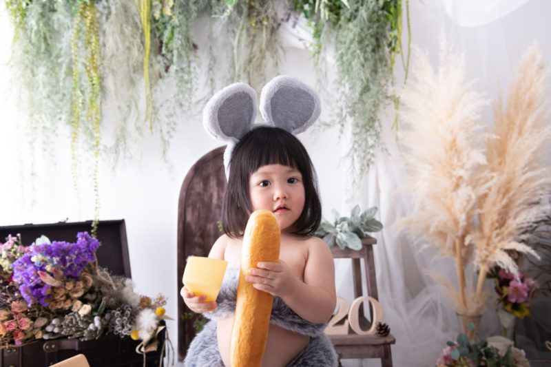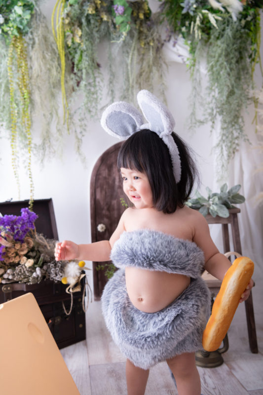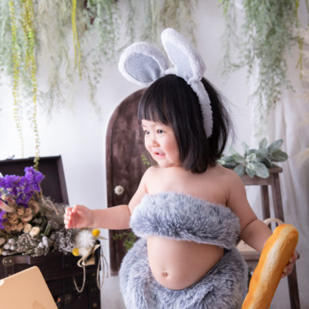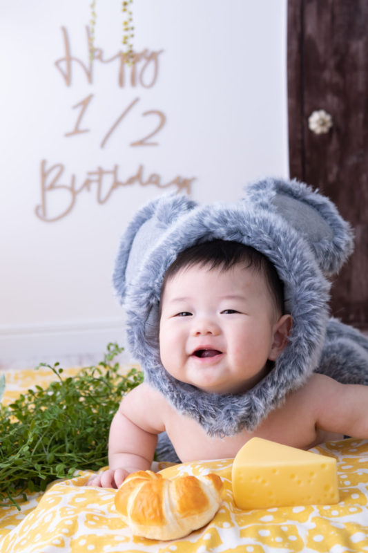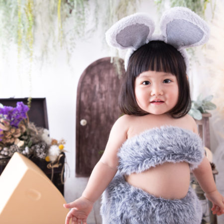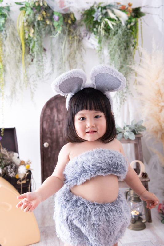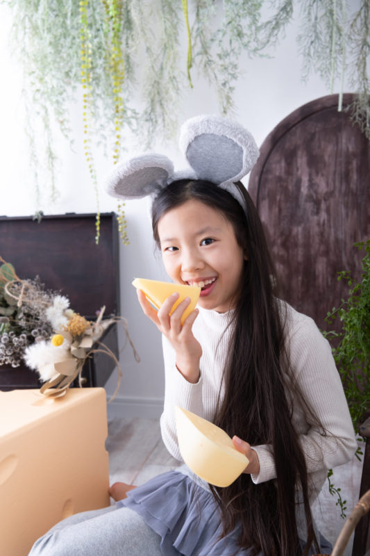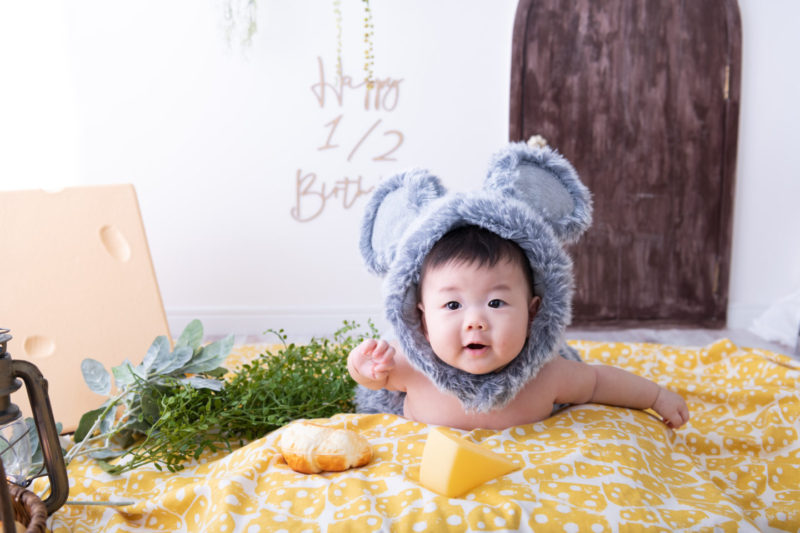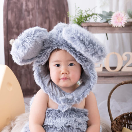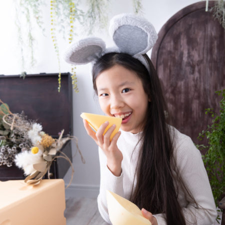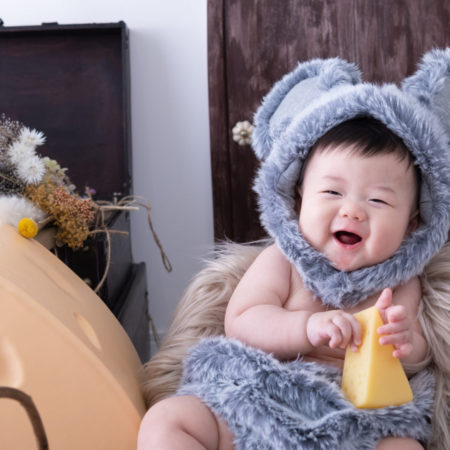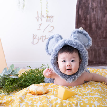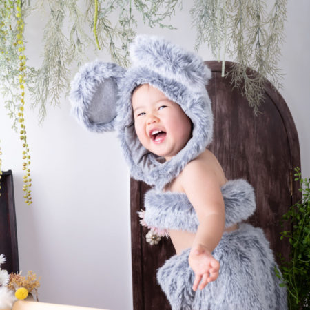 かわいいねずみの衣装を着てスタジオ撮影する、new year撮影会