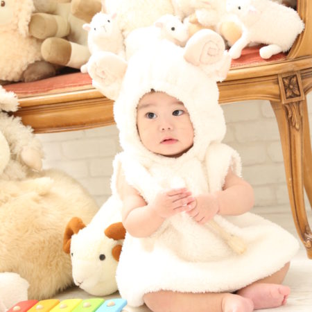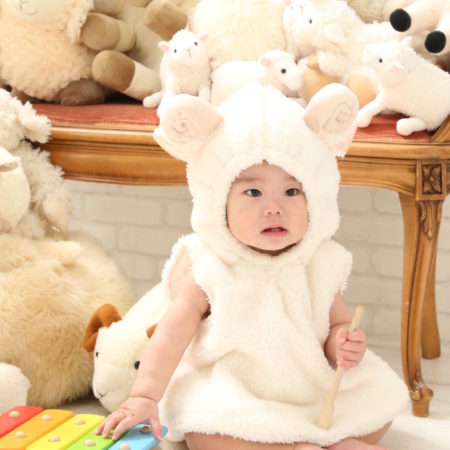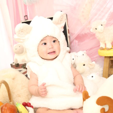 ひつじさんになりきった可愛らしい姿のお子様3名様をご紹介いたします。