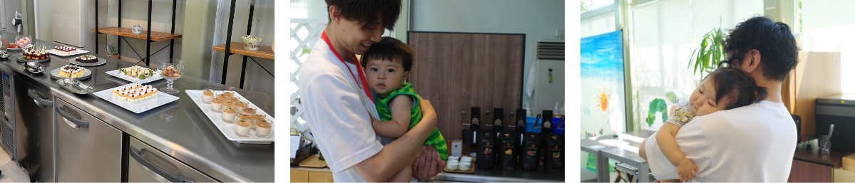 普段から子育てを頑張っているママパパたちがイベントをもっと楽しめるように、ドリンクバーとスイーツブッフェをご用意。また、ゆっくりスイーツを楽しんでいただけるように、スタッフがお子さんと一緒に遊んでお手伝いいたしました。