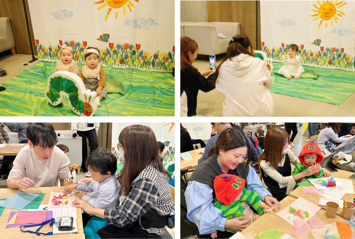 はらぺこあおむしのシールを貼ってデコレーションし、「思い出を形に残す」体験も。