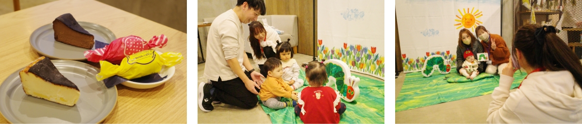 ブースでは、実際のはらぺこあおむし撮影会のセットの中で、ママがカメラマンになって撮影しました。