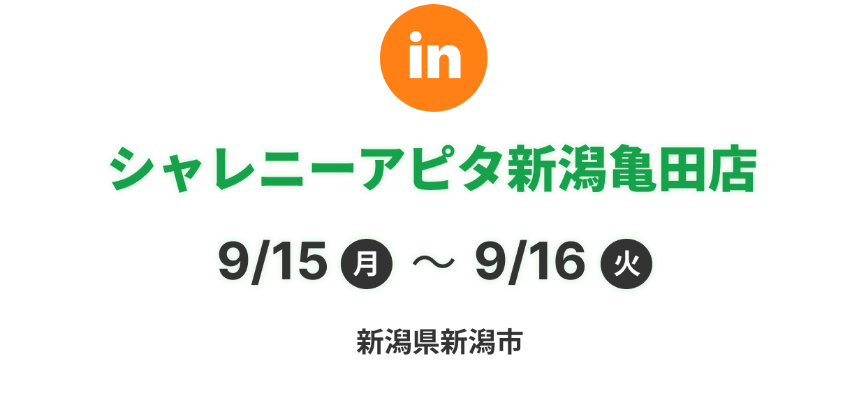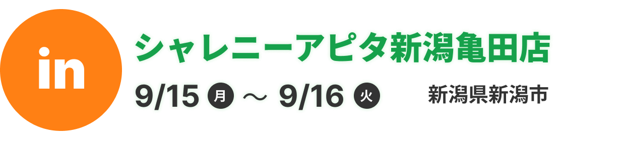 定休日:アピタ新潟亀田店に準じます