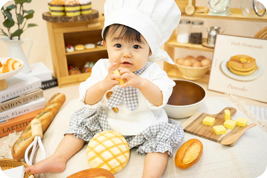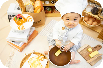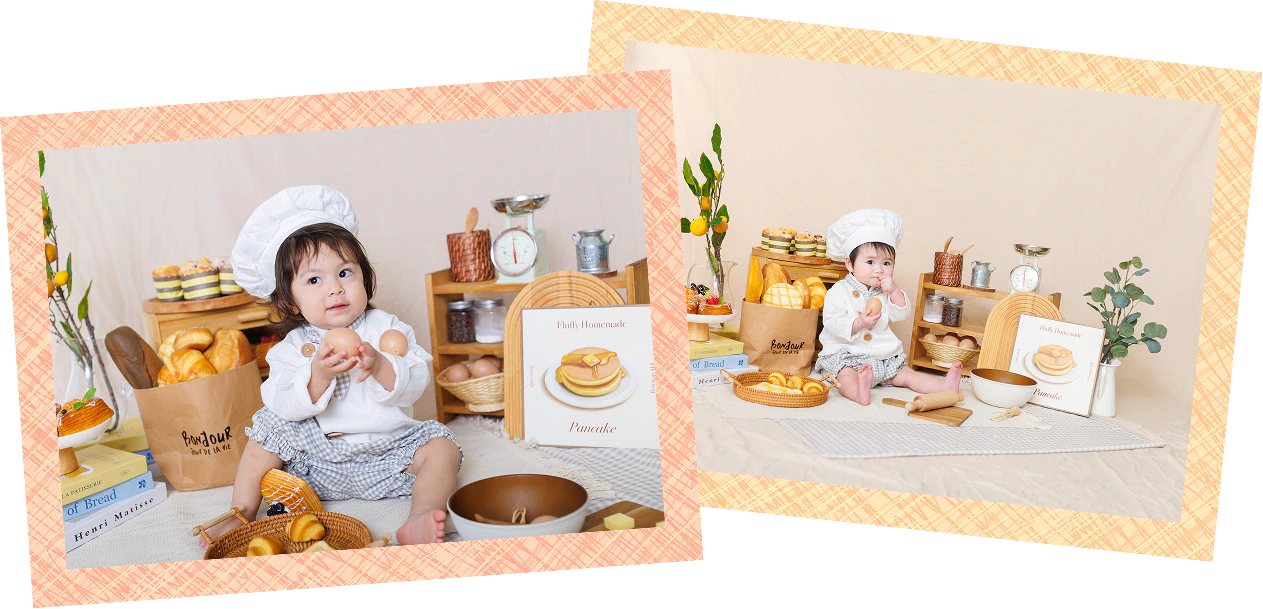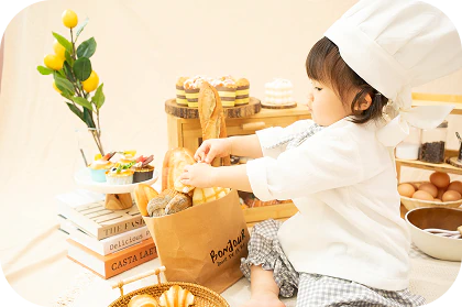 オリジナル衣装に身を包み、ちいさなパン屋さんに大変身できる撮影会です。